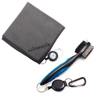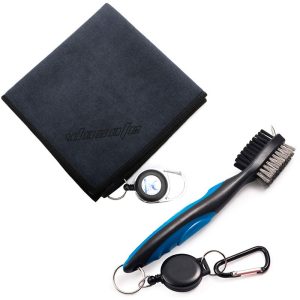 - A powerful brush that wipes off tough dirt easily for any iron/wood clubs without scratches. Sharp pick for tough dirt in grooves Soft and firm grip with good ergonomic design for any weather conditions, 2 Ft Retractable zip-line can be attached to the bag and easy for reach and use during the play.